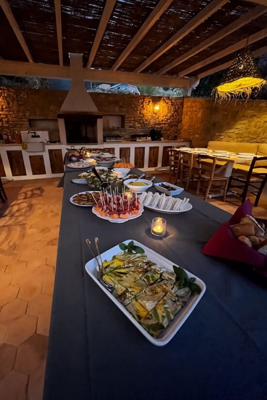 As evening falls, the portico becomes magically atmospheric, illuminated by soft, ambient lighting that enhances the natural beauty of its surroundings. It’s the perfect place for guests to gather, sharing stories of their day’s adventures or planning the next day’s explorations. The portico not only connects you to the beauty of the landscape but also to the heart of Fattoria Casalino, making every moment spent here a cherished part of your Tuscan experience.
